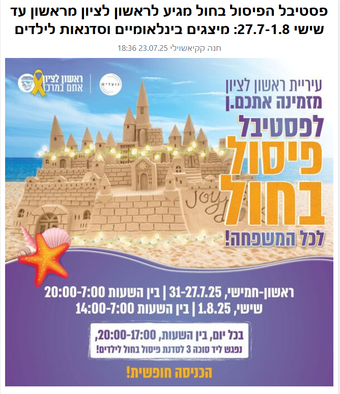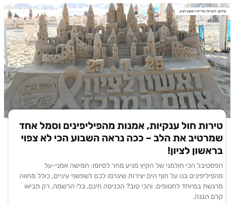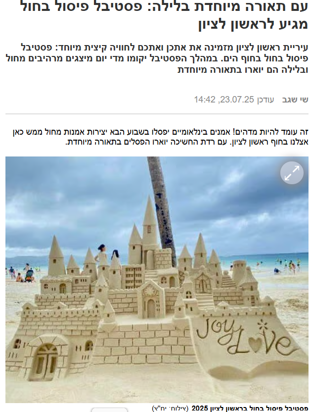 פסטיבל ארמונות החול הבינלאומי שנה שניה בישראל!